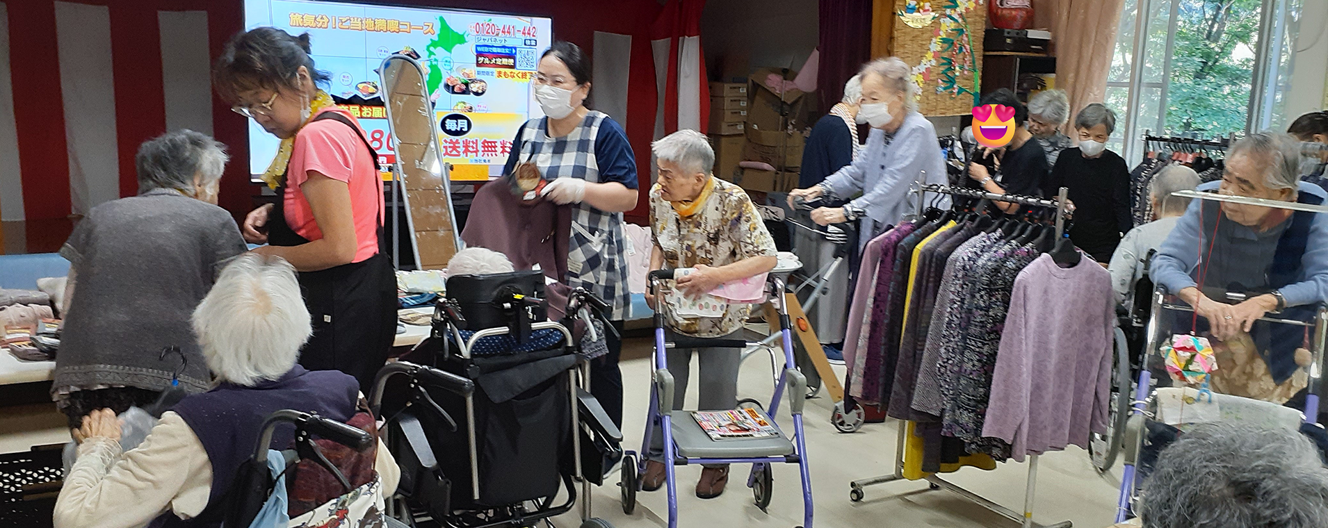 | 10月 | 月例会、誕生会、ショッピング、ホーム喫茶、寿司バイキング、秋の健康診断、運動会、秋のドライブ&昼食会 |